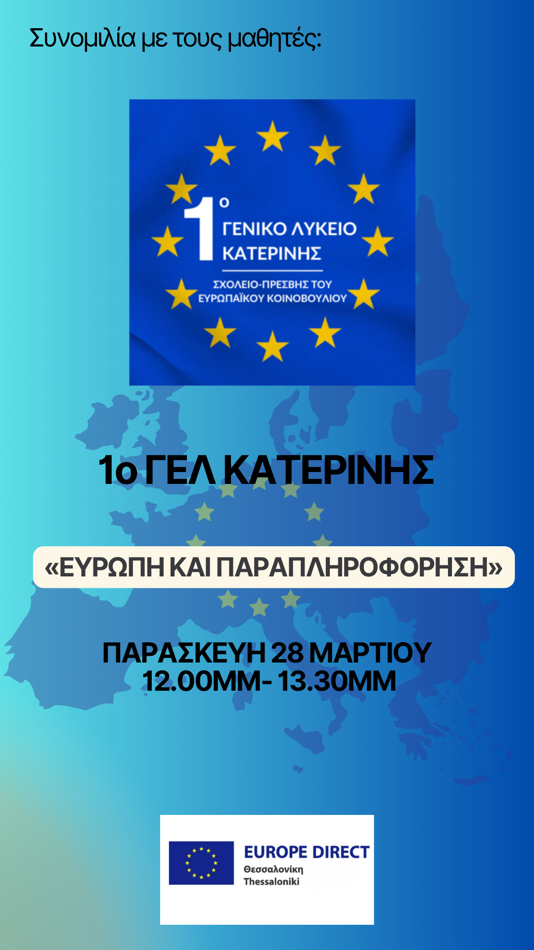 Με αφορμή την Ημέρα της Ευρώπης, το EUROPE DIRECT Θεσσαλονίκης, σε συνεργασία με το 1ο ΓΕΛ Ελευθερίου Κορδελιού – Σχολείο Πρέσβης του Ευρωπαϊκού Κοινοβουλίου και τον Δήμο Κορδελιού Ευόσμου,...